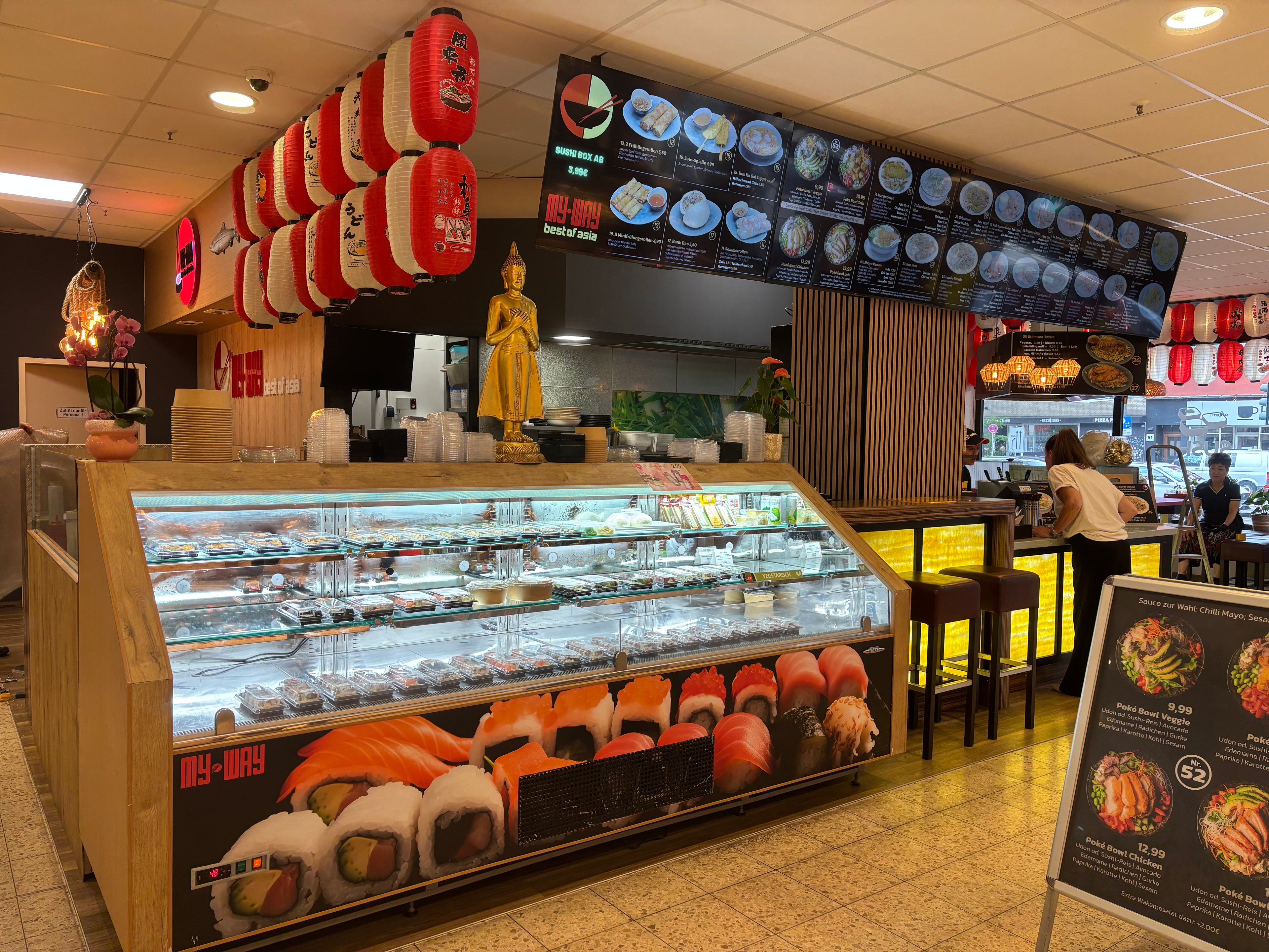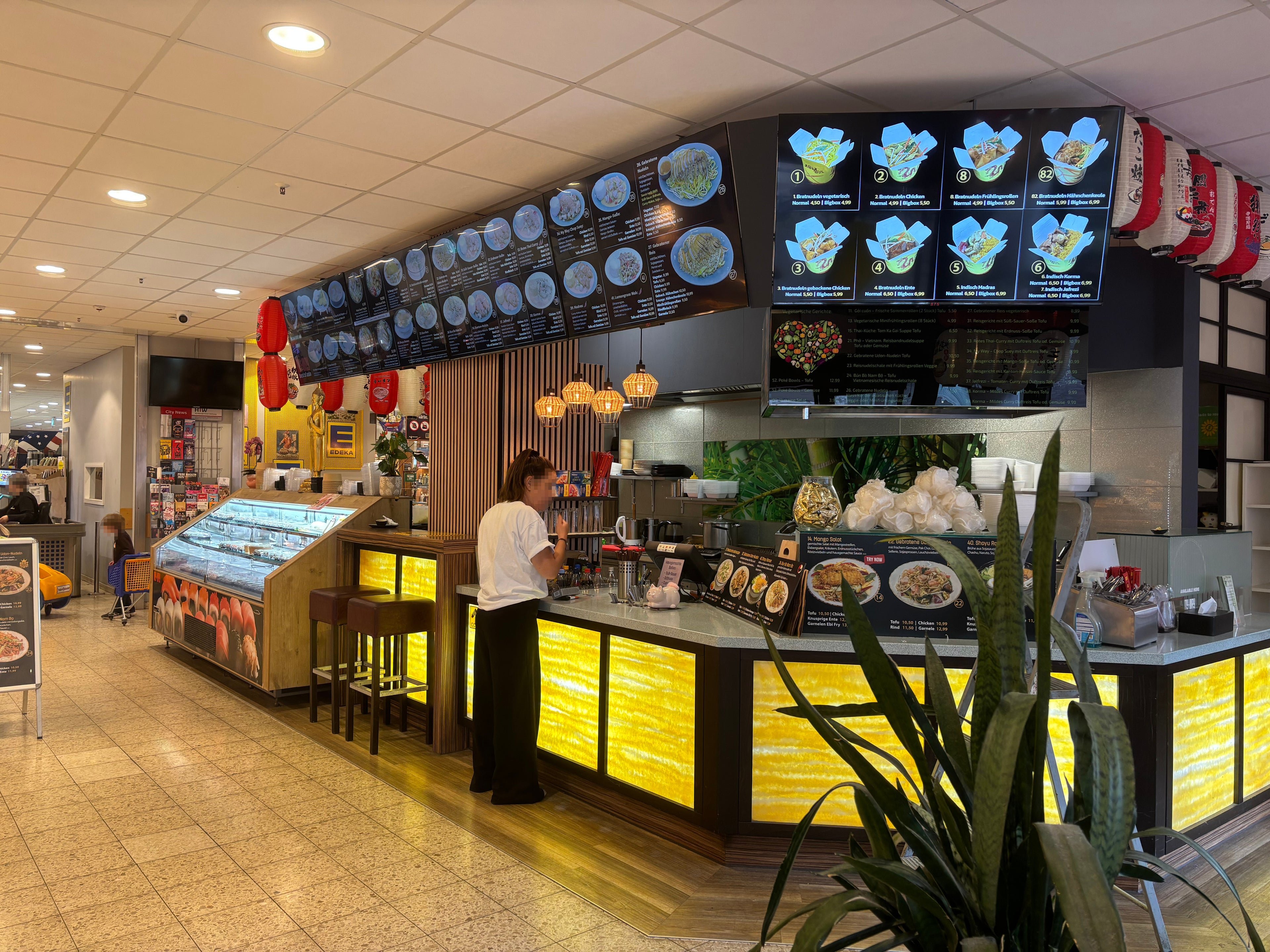 Neben unserer warmen Küche findest du vor Ort auch täglich frisch zubereitete leckere Sushi-Boxen zum Mitnehmen – perfekt für den schnellen Genuss zwischendurch.